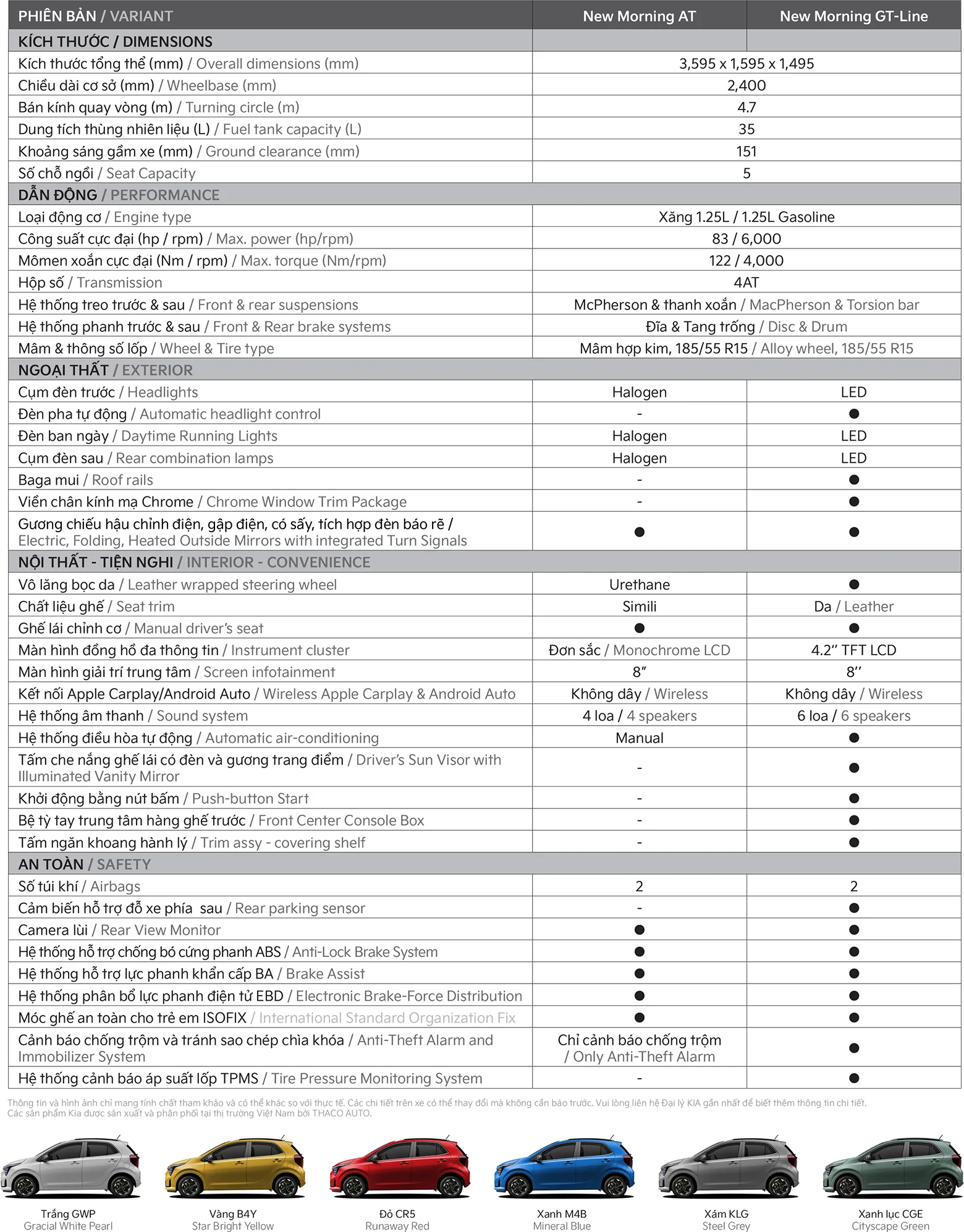Thông số New Morning